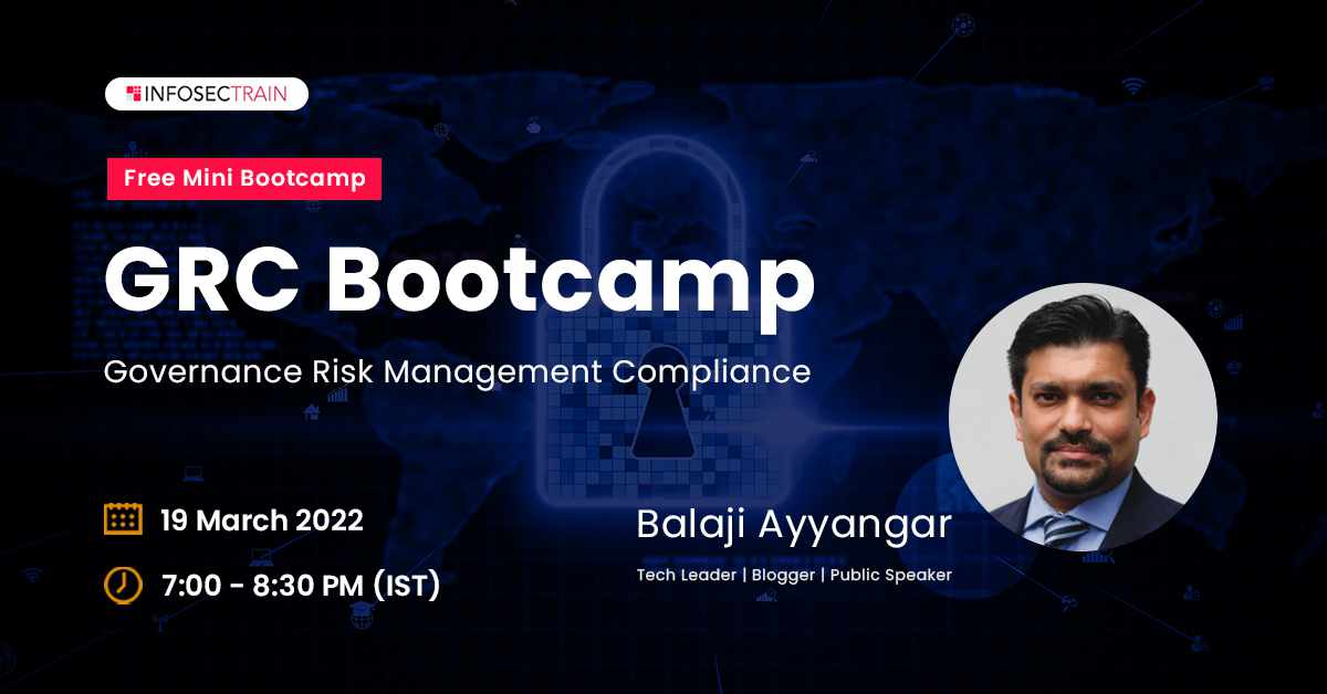 Infosec Train to host a live bootcamp on GRC that is Governance Risk Management Compliance with Balaji Ayyangar.